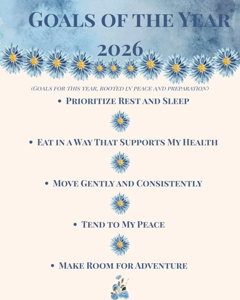 Over the years, I’ve learned to set smaller, more sustainable goals. This year felt different. Because of certain plans and circumstances, I’ve had to be more intentional about my goals, and that hasn’t always been easy. My focus shifted from accomplishment to preparation—while still wanting my goals to hold purpose and leave room for peace. That meant setting goals rooted more in experience than achievement—broader goals that allow room for preparation, rest, and reduced stress.